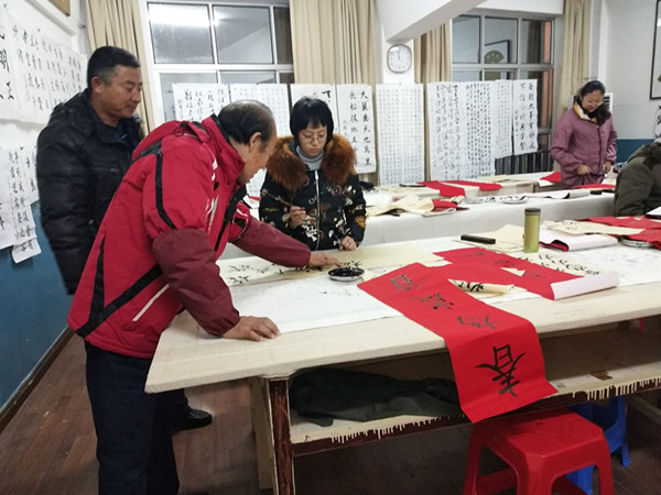 學(xué)員董兵說:“寫春聯(lián)不僅可以宣傳當(dāng)今新生活,還能表達(dá)自己的祝福,我在社區(qū)工作十多年了,沒想到還能夠換一種方式為居民服務(wù),真是有意義的事。”剛上兩節(jié)課的新學(xué)員張?jiān)普f:“我是這里基礎(chǔ)最差的了,也跟著他們練練,說不準(zhǔn)過年也能自己寫春聯(lián)呢!”