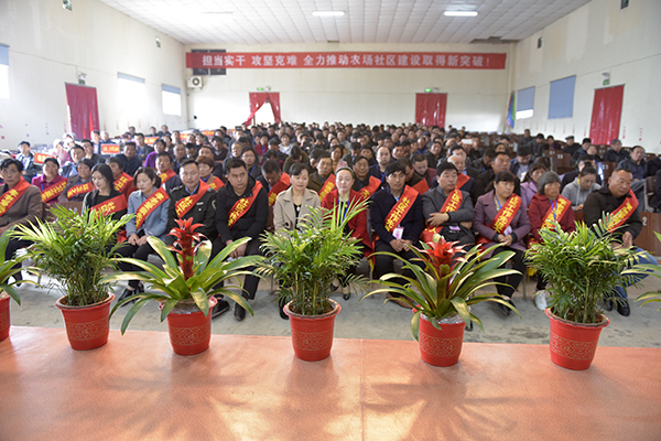 大會(huì)在莊嚴(yán)的國歌聲中宣告開幕,社管會(huì)常務(wù)副主任朱立榮作了題為《擔(dān)當(dāng)實(shí)干 攻堅(jiān)克難 全力推動(dòng)農(nóng)場(chǎng)社區(qū)建設(shè)取得新突破》的工作報(bào)告,回顧總結(jié)了2017年工作的成績(jī)和經(jīng)驗(yàn),分析歸納了社區(qū)建設(shè)中存在的困難和矛盾,明確提出了2018年工作的總體要求、主要目標(biāo),強(qiáng)調(diào)一要完善居民自治體系,提升社區(qū)治理水平;二要夯實(shí)基礎(chǔ)管理工作,提升社區(qū)行政效能;三要強(qiáng)化社區(qū)功能建設(shè),提升社區(qū)服務(wù)水平;四要加強(qiáng)社區(qū)環(huán)境治理,建設(shè)幸福美好家園;五要推進(jìn)社會(huì)職能改革,確保完成目標(biāo)任務(wù);六要?jiǎng)?chuàng)新黨建工作格局,發(fā)揮政治引領(lǐng)作用。大會(huì)以舉手表決的形式一致通過了上述報(bào)告及城鎮(zhèn)管理和環(huán)境保護(hù)兩個(gè)辦法,沈會(huì)生宣讀關(guān)于社區(qū)工作報(bào)告的決議。會(huì)上,各居委會(huì)及相關(guān)單位遞交了社區(qū)管理目標(biāo)責(zé)任狀或共駐共建協(xié)議。紀(jì)委書記、工會(huì)主席韓躍武宣讀社區(qū)表彰決定,對(duì)2017年度防違治違工作先進(jìn)單位、環(huán)衛(wèi)工作先進(jìn)單位以及孝老愛親先進(jìn)個(gè)人、志愿服務(wù)先進(jìn)個(gè)人、文明居民、環(huán)衛(wèi)之星和社區(qū)工作先進(jìn)個(gè)人等進(jìn)行了表彰并頒獎(jiǎng)。會(huì)上,社會(huì)事業(yè)科科長陳云祥作了題為《勇于擔(dān)當(dāng)抓落實(shí) 強(qiáng)化執(zhí)行促發(fā)展》的交流發(fā)言,健康居委會(huì)主任李永新作了題為《創(chuàng)新社區(qū)治理 共建幸福家園》的交流發(fā)言,六支居委會(huì)主任竇同春作了題為《搶抓機(jī)遇 乘勢(shì)作為 全力打造“美麗鄉(xiāng)村”金名片》的交流發(fā)言。