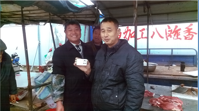 這時(shí),徐加才已經(jīng)將油條燒餅裝在塑料袋里,欲往仇冬生的口袋里硬揣,仇冬生急忙將它退回。兩人一送一退,禮讓了好幾個(gè)回合。仇冬生看這樣推讓下去也不是個(gè)辦法,于是,他委婉地說(shuō):“您的情我領(lǐng)下了。不過(guò),我從小到大不喜歡吃油條、燒餅。這樣,我把您送給我的這份油條燒餅存您這里,您幫我出售,過(guò)幾天我到您這里來(lái)取‘錢(qián)’”。仇冬生一番詼諧幽默的語(yǔ)言,頓時(shí)將失主徐加才給逗樂(lè)了。徐加才對(duì)仇冬生說(shuō)的幽默話心領(lǐng)神會(huì),執(zhí)意要答謝仇冬生的念頭也打消了。圖為4月12日上午,仇冬生將拾到的身份證交還給失主徐加才。