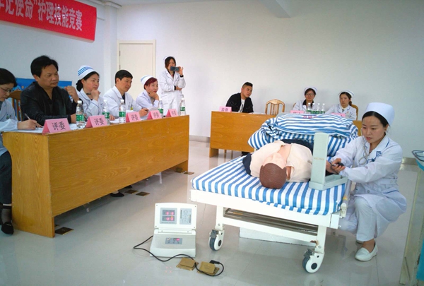 比賽中,護士們情緒飽滿,技能嫻熟,緊張有序的進行模擬人操作,沉著冷靜應對操作過程中遇到的各種狀況,體現了在急救過程中爭分奪秒的精神。評委們對照操作標準對參賽人員所展示的護理技能進行了嚴格的評判。