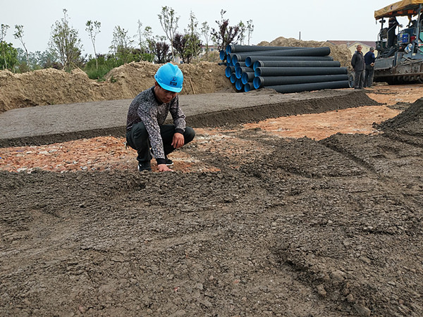 每天天蒙蒙亮,在新洋農場有限公司黃沙港大橋南接線工程的工地上,人們都能看到一個忙碌的身影,個頭不高,皮膚黝黑,胡子拉擦,他時而蹲在地上,時而爬上工程車里,仔細查看工程質量,他就是新洋農場有限公司黃沙港大橋接線工程監督員陸首將。
