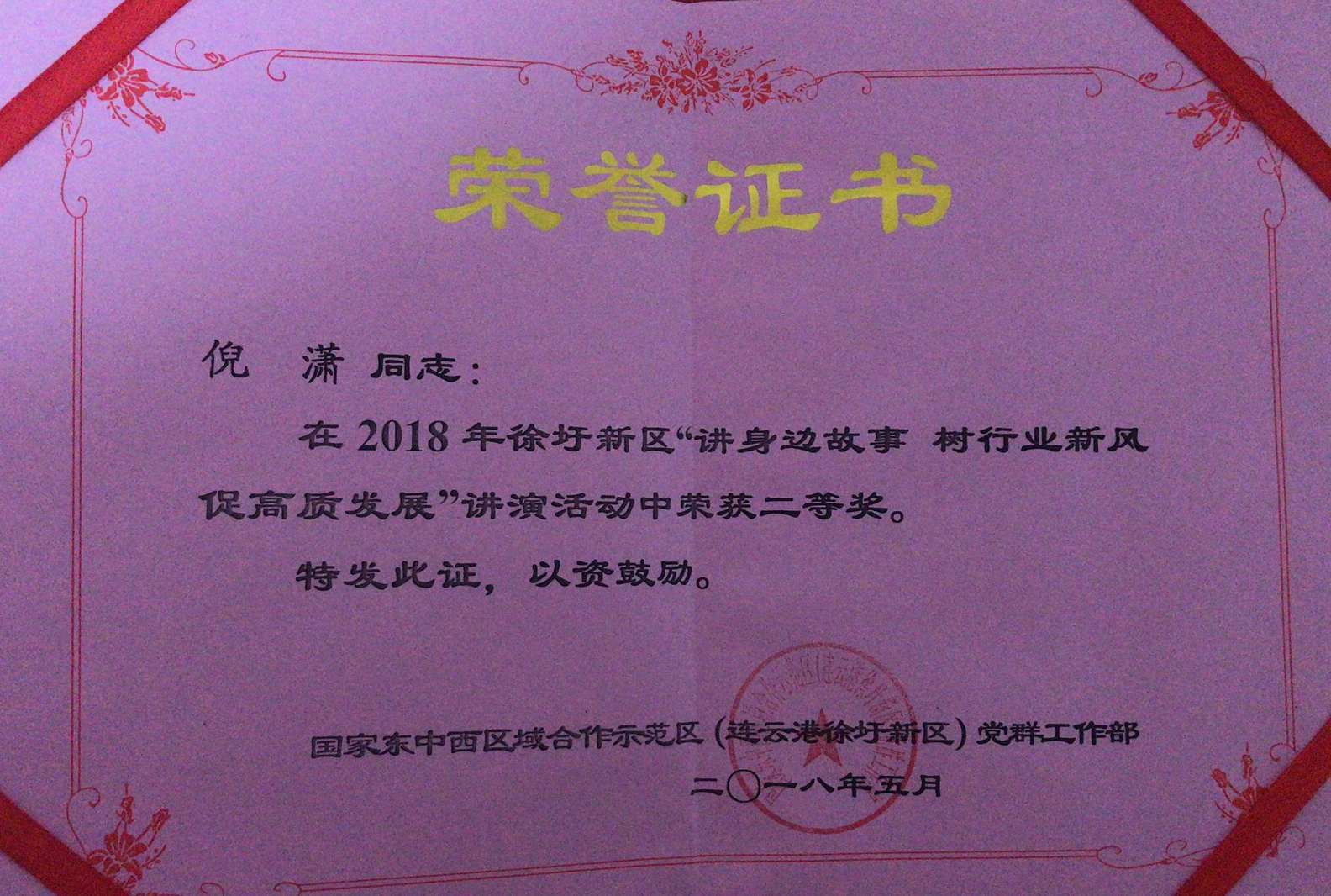 東辛倪瀟榮獲徐圩新區職工演講比賽二等獎