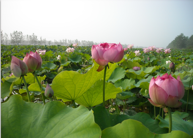 愛蓮苑目前已經(jīng)發(fā)展到有近600個水生花卉品種,每年向外銷售各類水生花卉品種1500多萬枝(芽)。我們在苑區(qū)參觀時,能看到400多種荷花、60種睡蓮等主打品種外,還見到了其他名目繁多的水生、挺水、水岸、浮水、沉水植物和一些野生的花卉種質(zhì)資源,李靜,就是這樣,把這里打造成了她實施夢想之旅的實驗基地。