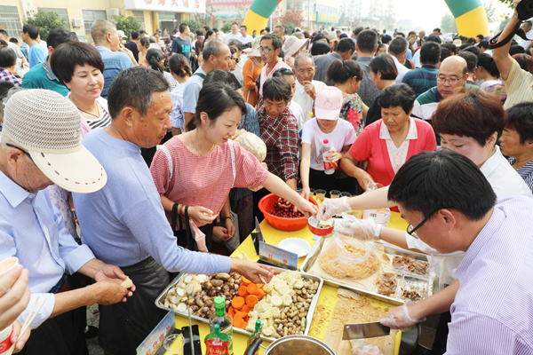 “豐收盛宴”美食品嘗。活動現場,公司所屬各單位還精心準備了種類豐富的特色美食,供觀眾免費品嘗。大家一邊興致勃勃地觀看文藝節目,一邊開心地品嘗著各單位職工烹制的美食飲品。茶葉草雞蛋、牡丹油酸奶、彩色果蔬面條、鹽水蝦、白斬雞、炒田螺、煮菱角、爆玉米花……人們品嘗的食材多數是臨海自產的農副產品。幾十種特色佳肴,各有各的味道,真是一場美味的盛宴!