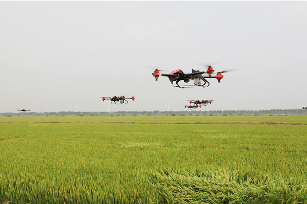 “保障豐收”無人機植保演示。922下午2:00,在江蘇省農墾農業發展股份有限公司臨海分公司8大隊的田頭,六架植保無人機迎著秋日艷陽騰空而起,羸得現場觀賞植保飛防演示的職工群眾一片喝彩。本次演示的無人機飛防,僅是農業上“保障豐收”措施中的一項。除此之外,農機耕作的GPS導航,水稻種植的硬盤微噴灌育秧,曬場新建的暫貯式糧食風干倉等等,一系列農業創新科技的運用及先進技術裝備的應用層出不窮,助力了農業生產管理,促進了農業質量、效益的顯著提升。