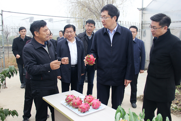 王旭東一行深入連棟大棚內(nèi),詳細(xì)了解紅心火龍果、新品種蔬菜—佛發(fā)菜的種植、市場銷售行情以及經(jīng)濟收益情況,對有機農(nóng)莊在現(xiàn)代農(nóng)業(yè)上的的示范引領(lǐng)作用表示充分肯定。在該場容器扦插中山杉育苗基地,王旭東認(rèn)為,利用空閑大棚扦插苗木生產(chǎn)是發(fā)展高效農(nóng)業(yè)的新途徑,值得本市各鄉(xiāng)鎮(zhèn)學(xué)習(xí)和借鑒。