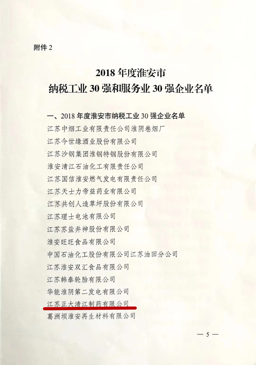 為表彰先進、樹立標桿、促進淮安地方經濟邁向高質量發展行列,近日,由淮安市人民政府發起和組織開展的“淮安經濟人物、淮安市納稅工業30強和服務業30強企業、淮安市金融支持制造業發展突出貢獻單位“評選活動在淮揭曉并正式向社會發布,正大清江制藥以年納稅額超億元榮登2018年“淮安市納稅工業30強企業”第15位,至此正大清江制藥已連續兩年躋身“市納稅工業三十強企業”行列。