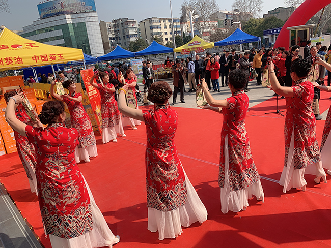 展銷會上,知青藝術團傾情演唱了《知青功勞永不忘》,表演了脫口秀、旗袍秀、男女聲獨唱、笛子獨奏等節目,將會場氣氛推向高潮,吸引大批鎮江市民前來選購。