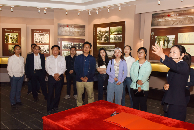 雖然新聞媒體記者一行在淮海農場有限公司參觀的時間較短,但通過參觀,讓采訪組一行對農場軍墾傳統文化感觸頗深,感受到了軍墾文化的深刻內涵。他們認為淮海的軍墾傳統文化的素材極為豐富,軍墾文化的收集、保護和展示工作做得很好,其內在的教育意義更濃,是一個非常寶貴、不可多得的軍墾傳統文化傳承教育的史實資料場館。圖為農墾改革發展百場行”墾區巡禮采訪組一行在淮海農場有限公司參觀時的鏡頭。
