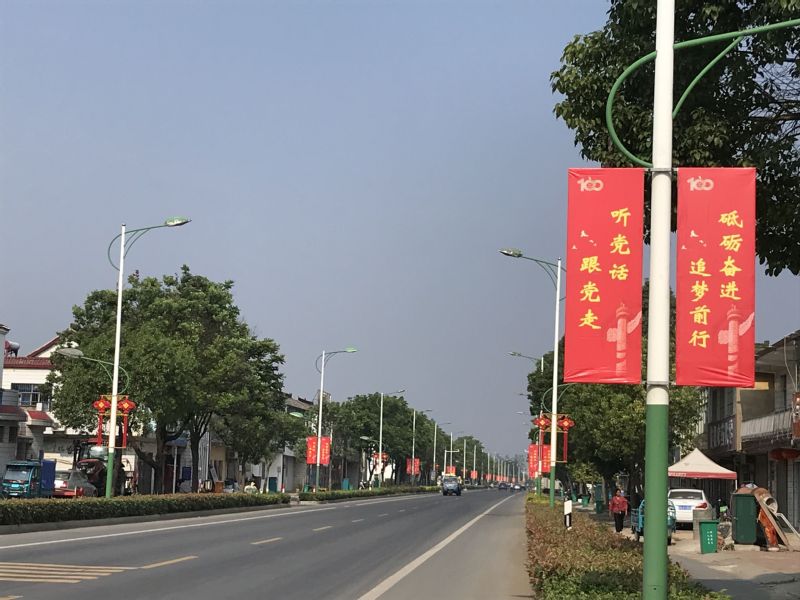尤其是中國結景觀燈,主體材質為紅色吸塑,LED發光,單個高2.5米,寬1.3米,兩個一組,分別安裝在路燈桿兩側高4米的位置,照明和美觀效果兼備,確實讓人眼前一亮。而且中國結寓意深刻暗含了中國傳統厚重的吉祥文化,表達著熱烈濃郁的美好祝福,融入了中華民族對生命的認知,對生活的體驗,對未來的期許。目前已安裝好的“中國結”和道旗及宣傳標語共近500組。這部分主干道上的燈桿換上“新裝”以后,白天,宣傳標語整齊喜慶、入腦入心,夜晚,中國結景觀燈和路燈交相輝映,營造了濃郁的喜慶氛圍,吸引了不少居民駐足拍照留念,得到了大家的一致好評。