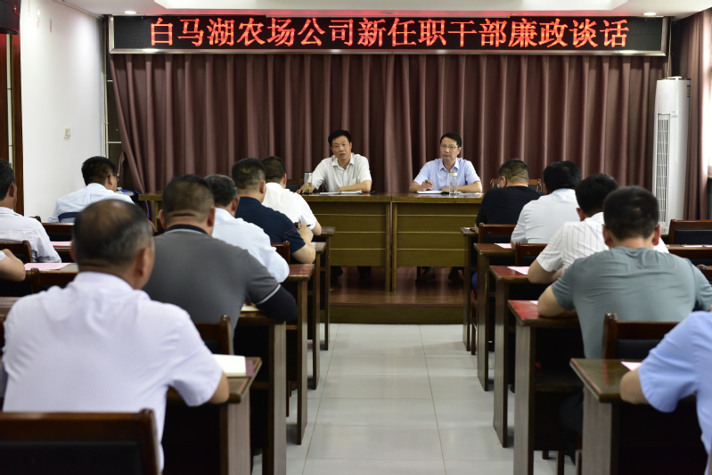 為切實落實全面從嚴治黨主體責任,提高新任職干部對黨風廉政建設重要性的認識,筑牢新任職干部廉潔自律的防線,72日下午,白馬湖農場公司對40多名新提拔或崗位調整任新職干部開展集體廉政談話,黨委書記姚春華、紀委書記韓躍武分別進行談話。