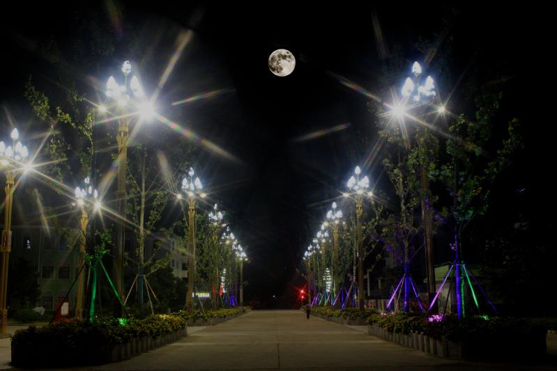 中秋之夜,新洋城鎮華燈齊放,尤其是中心花園、黨建廣場和徑九路上新安裝的18盞新穎靚麗的高桿路燈格外明亮,與十五的圓月交相輝映,新洋的夜晚更亮麗。