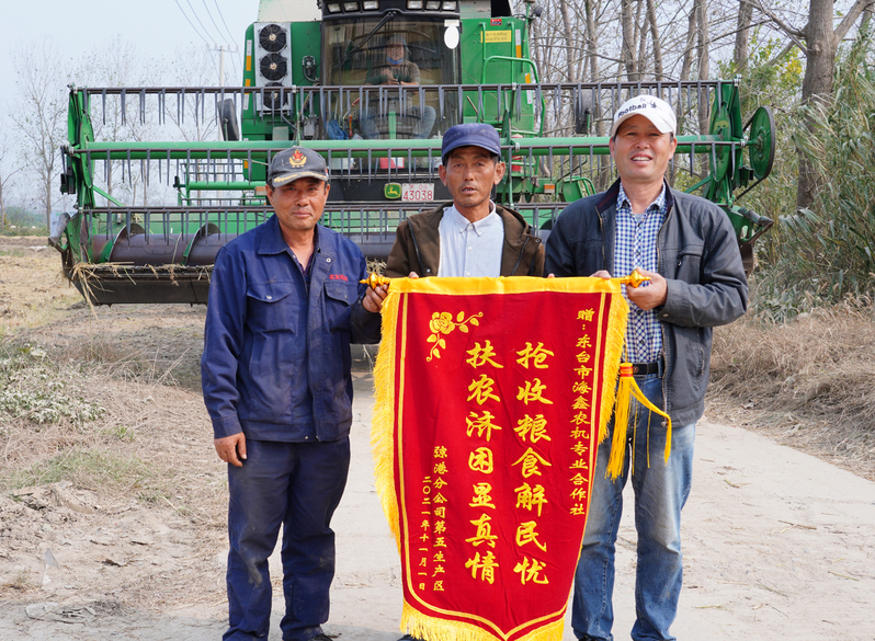 11月1日中午12點30分,收割車隊弶港分公司第五產生區17連北匡19、20號田駛出,生產區主任楊定貴臉上露出了笑容,4300多畝水稻秋收任務提前完成,為秋播、秋管打了良好基礎,他激動地拿出錦旗送到農友農機機駕人員手上,連聲感謝農友農機在生產區秋收緊急關頭及時出手救援,為生產區“三秋”工作爭得了主動權。