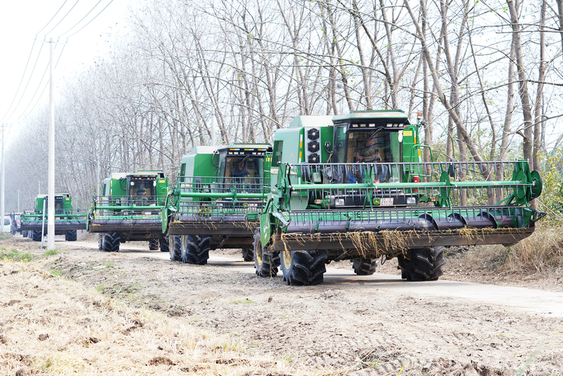 楊主任算了一筆賬,今年收割作業難度比往年大,油價又一路上漲,本場每畝收割費比外地還少些,一來一去,農友農機在經濟收入上得有2萬多元的損失。來不及休息,農友農機的作業機組又馬不停蹄趕往射陽,確保按時完成既定收割任務。