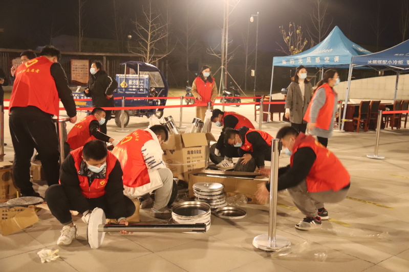 一名黨員就是一面旗幟。黨員志愿者們身穿紅馬甲,忙碌的身影,時時穿梭在機(jī)關(guān)門口、立新公園采樣點之間,成為夜空下一抹靚麗的風(fēng)景線。搬運隔離欄,擺放桌椅,搭起遮陽篷,拉起警戒線,布設(shè)指引標(biāo)志,劃定一米線,配齊消毒液、醫(yī)療廢物垃圾桶,對現(xiàn)場布置進(jìn)行查漏補(bǔ)缺,只為居民群眾提供一個安全有序的核酸檢測環(huán)境。