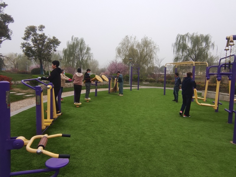公園內(nèi)的健身器材,是晨練人喜歡光顧的地方,大家來晨練時(shí)會(huì)先后來到公園運(yùn)動(dòng)器材處進(jìn)行鍛煉。這里有一片綠色的塑料草坪,大大小小十多個(gè)運(yùn)動(dòng)器材,成為晨練人最好的健身之所。我幾次路過公園,都看見晨練人周家寶拿起大掃帚在運(yùn)動(dòng)器材等場(chǎng)地上打掃衛(wèi)生,一掃把一掃把的揮舞動(dòng)作,看得出是那樣的鏗鏘有力。同行的晨練人和他開玩笑說“看來負(fù)責(zé)這片衛(wèi)生的環(huán)衛(wèi)工人要付你工資啦。”周家寶卻樂呵呵地說道:“我這也是運(yùn)動(dòng)啊,還能給大家營造一個(gè)干凈舒適的鍛煉環(huán)境,一舉兩得呢!”