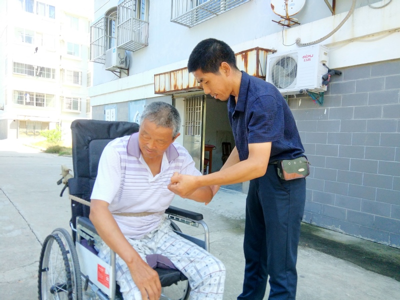 “小陳人勤快,心地也善良,他燒的飯有滋有味很好吃,特別是他還給我講國內外許多的有趣事,現在的我雖然坐著輪椅,但小陳就是我的‘腿’,想到哪就到哪,我再也不寂寞了。”姚廣成開心地說,“我雖有兒子,但這五年來,他時刻陪伴在我身邊,有勝過‘兒子’般的細心,同一屋檐下住,又吃著同一鍋飯,我們自然心也貼得非常得近。”