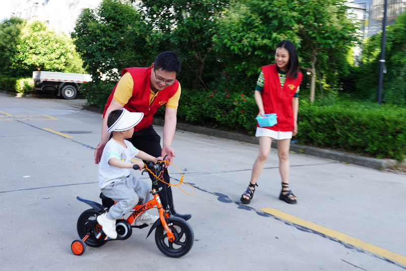 6月10日下午,弶港農場團委“愛心爸爸”“愛心媽媽”帶著兒童繪本和玩具,走進困境兒童小浩浩的家里。“奧迪曼與怪獸作戰斗…… ”夢想小屋的書桌前,浩浩依偎在“愛心媽媽”孫菁懷里,聽著有聲有色的奧特曼的故事。“別怕,勇敢地往前騎,我在身后保護你”“我們一起來比賽,看誰快”小區的空地上,在“愛心爸爸”陳海榮鼓勵下,浩浩騎著兒童單車,開朗的笑聲在小區里飄蕩。一起玩拼圖、畫畫、做游戲,幾個小時下來,不愛說話的小浩浩從最初的羞澀生疏,到漸漸展露笑容,短暫的相聚中,與“愛心爸媽”建立了深厚的信任和感情。
