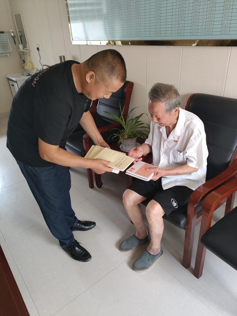 賴順祥其實(shí)就是一名普普通通的退休老黨員,他們退休在家,也干不出什么驚天動地的大事業(yè),但他們以最樸實(shí)無華的方式發(fā)揮著余熱,始終展現(xiàn)出一名共產(chǎn)黨人優(yōu)良的品質(zhì)。“退休不褪色,夕陽更生輝!”也是對賴順祥和所有退休黨員的真實(shí)寫照。圖為賴順祥接過黨員學(xué)習(xí)資料的瞬間。