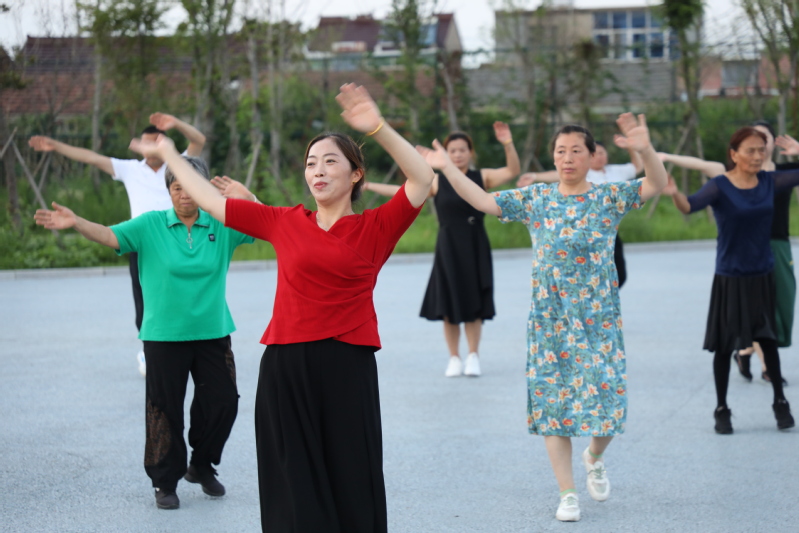 廣場舞臺(tái)上的愜意。每天傍晚6:30分,文化廣場都會(huì)傳出一陣陣歡快的音樂聲,伴隨著音樂的節(jié)奏,近百人舞動(dòng)的身姿吸引著不少人跟著跳動(dòng)比劃。自文化廣場建成后,農(nóng)場公司特地在百姓大舞臺(tái)廣場安裝了接電裝置,為職工居民跳廣場舞提供方便,舞臺(tái)南側(cè)的高桿燈光明亮,舞者們的臉上洋溢著幸福的微笑。廣場建成后,退休職工黃淑英主動(dòng)當(dāng)起了廣場舞的老師,每天領(lǐng)著大家一起跳操跳舞健身,一支百余人的廣場舞隊(duì)每天活躍在文化廣場,帶動(dòng)了更多的職工居民加入到跳舞健身的行列。黃淑英說:每晚跳舞健身后的大汗淋漓舒服極了,不僅使全身都得到了活動(dòng)和放松,增強(qiáng)了體質(zhì),還增進(jìn)了大家之間的感情。