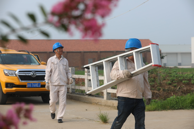 727日早上6點(diǎn)半,寶應(yīng)湖農(nóng)場(chǎng)各居民臺(tái)變處,一位位頭戴安全帽的電力小哥已經(jīng)到崗就位。
