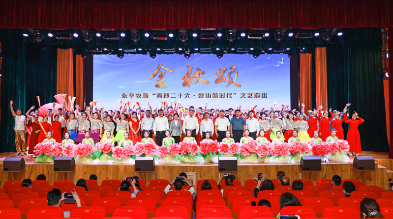 金秋九月,秋高氣爽。為慶祝中華人民共和國成立73周年,喜迎黨的二十大勝利召開,9月29日下午,東辛舉辦“金秋頌·喜迎二十大 建功新時代”文藝演出。東辛黨委書記、董事長韓中書、副總經理陳躍武、紀委書記王芹、副總經理戴祥、蘇墾農發東辛分公司副總經理王加樹、陳寬兵等領導出席。