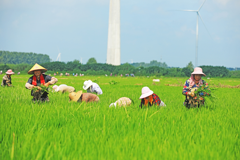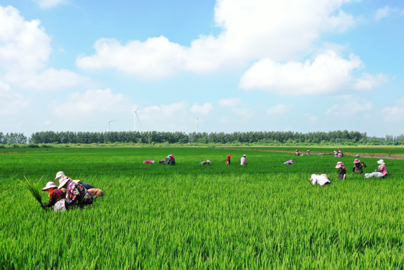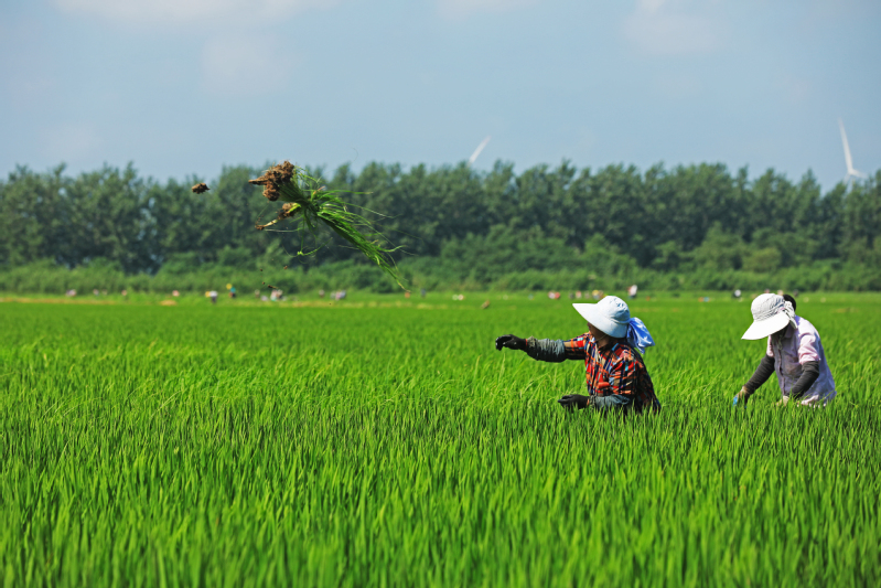 蘇墾農(nóng)發(fā)寶應(yīng)湖分公司擁有3500畝有機(jī)稻生產(chǎn)基地,該基地于2021年取得歐盟、國環(huán)雙認(rèn)證。為保障有機(jī)稻質(zhì)量,每到夏季,公司都會(huì)組織進(jìn)行人工拔“雜草稻”。高溫炙烤下,200多名勞動(dòng)者揮汗如雨,為生產(chǎn)出“魚米之鄉(xiāng)”高質(zhì)量有機(jī)米貢獻(xiàn)力量。