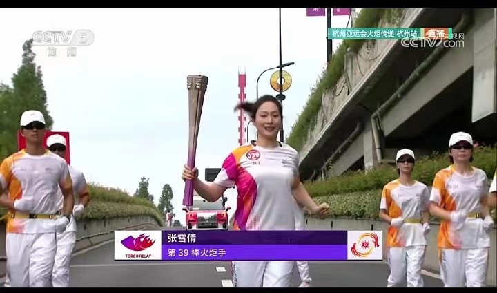 9月20日上午,杭州第19屆亞洲運動會火炬傳遞杭州站起跑儀式在杭州城市陽臺舉行。前國家隊擊劍運動員,江心沙農場職工子女張雪倩作為39棒火炬手傳遞亞運精神。