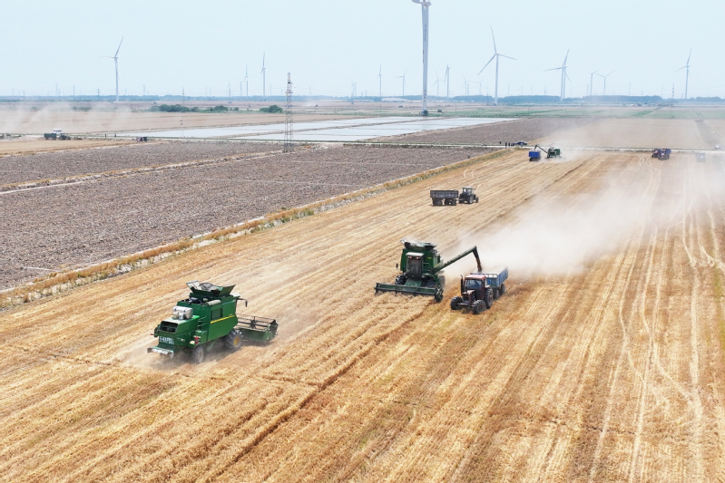 2025年5月29日,鹽城射陽(yáng)縣江蘇農(nóng)墾臨海農(nóng)場(chǎng)順泰生產(chǎn)區(qū)麥浪涌動(dòng),大型聯(lián)合收割機(jī)轟鳴作業(yè),率先拉開當(dāng)?shù)叵氖招←溞蚰?。近年來,農(nóng)場(chǎng)黨委以墾地合作推動(dòng)發(fā)展,通過技術(shù)賦能與鹽堿地改良,昔日鹽堿地蛻變?yōu)椤皣嵓Z田”,為鄉(xiāng)村振興打造國(guó)有農(nóng)業(yè)新樣板。