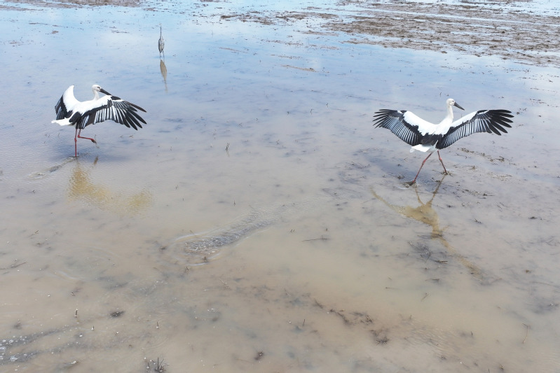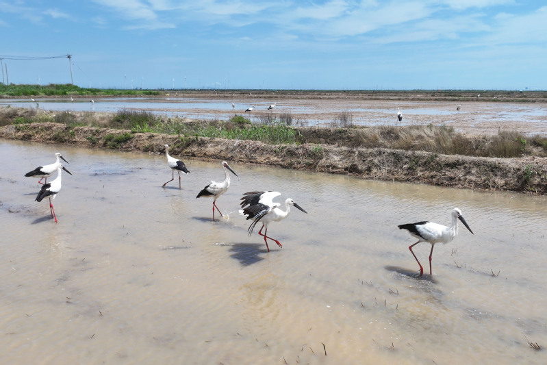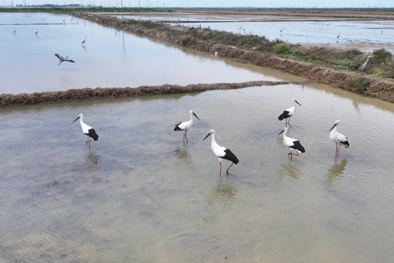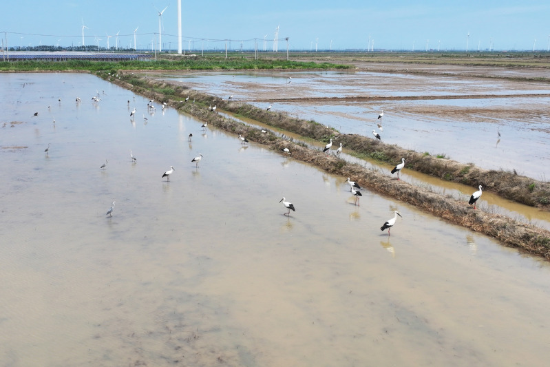 6月23日,江蘇省鹽城市射陽縣臨海農(nóng)場(chǎng)順泰生產(chǎn)區(qū)的水田里,50余只國家一級(jí)保護(hù)動(dòng)物東方白鸛姿態(tài)優(yōu)雅,正悠然漫步、覓食,與水田的碧波相互映襯,構(gòu)成一幅靈動(dòng)的生態(tài)畫卷。