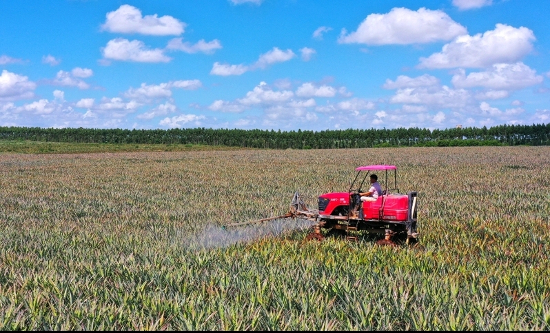 友好農(nóng)場的萬畝菠蘿田處于菠蘿生長黃金地帶,早期主要種植巴厘品種,占總面積的98%以上。由于種植存在品種單一、管理粗放、單價低等問題,一度出現(xiàn)“農(nóng)戶不敢種,商人不敢收”的窘境。2021年以來,友好農(nóng)場利用菠蘿產(chǎn)業(yè)強(qiáng)鎮(zhèn)項目,引進(jìn)臺農(nóng)16號、17號等優(yōu)質(zhì)鳳梨品種,篩選出果肉嫩滑、酸甜適中的臺農(nóng)17號等優(yōu)良品種,試驗示范種植480畝,并通過GPS定位、蓋膜、電石催花、果實套袋等技術(shù)創(chuàng)新,努力攻克鳳梨管理技術(shù)難題,實現(xiàn)了畝均利潤近3000元,讓農(nóng)戶的“傷心果”變成了“致富果”。如今標(biāo)準(zhǔn)化種植模式已帶動30戶農(nóng)戶種植臺農(nóng)17號、芒果鳳梨、冬蜜鳳梨等新品。農(nóng)場計劃3年內(nèi)實現(xiàn)1萬畝新品種示范規(guī)模,覆蓋率達(dá)50%以上。