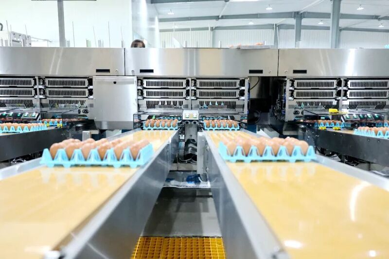 雞蛋的“出場儀式”同樣充滿科技感。它們從雞舍“出發”,經中央集蛋流水線直達蛋庫,進入處理能力達每小時8萬枚的全自動分選線,依次完成清洗、烘干、紫外線殺菌、裂紋檢測、稱重分級、噴碼溯源……15道工序一氣呵成。不合格的蛋會被自動剔除,合格的蛋則會被噴上獨一無二的“生日檔案”編碼,實現從養殖到餐桌的全程可追溯。