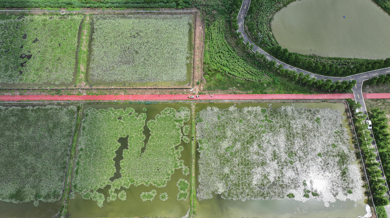 盛夏七月,蘇墾農(nóng)發(fā)東辛分公司西洋生產(chǎn)區(qū)20大隊(duì)的田野里,一幅現(xiàn)代農(nóng)業(yè)的壯美畫卷正徐徐展開。林帶東西兩側(cè)呈現(xiàn)出截然不同卻又和諧共生的“雙景圖”:一側(cè)是整齊的大豆玉米帶狀復(fù)合種植田,高矮作物錯落有致,綠意盎然;另一側(cè)則是一望無際的蔥郁水稻田,挺拔的秧苗已進(jìn)入拔節(jié)初期。這正是東辛農(nóng)場“穩(wěn)糧擴(kuò)油”發(fā)展戰(zhàn)略的生動寫照。