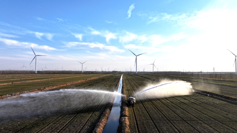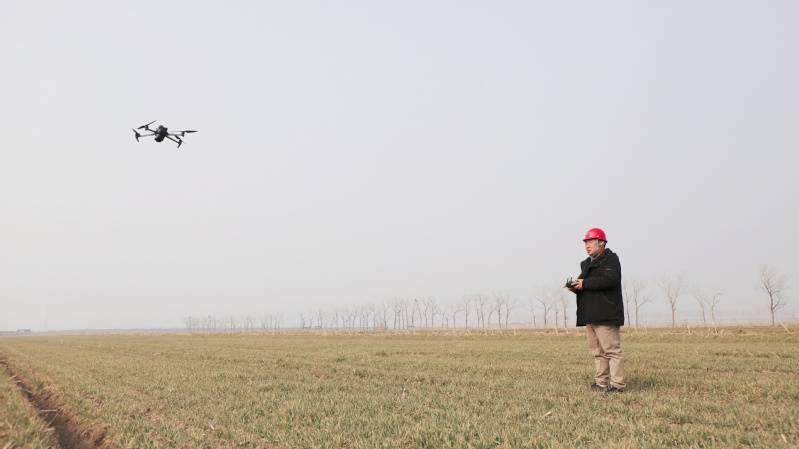 春季是雜草生長的高峰期,同時也是小麥施肥的關鍵節點。及時開展化學除草并合理施肥,能夠有效抑制雜草危害,為小麥生長補充所需養分,促使麥苗茁壯成長。連日來,在三河的 4.2 萬畝麥田里,無人機、植保機在田間往來穿梭,開展化除作業。各生產區依據前期對草情苗情的普查結果,科學挑選除草劑,并嚴格按照配比和操作規程進行噴施,在確保除草效果的同時,防止對小麥造成藥害。與此同時,針對不同地塊的肥力狀況以及小麥生長態勢,制定了精準的施肥方案,以提升肥料利用率。2月27日上午,在潘莊生產區王佳鈺規模體田間,生產區副主任朱廣耀、農業技術員孫文崢一邊在田間查看雜草發生情況,一邊根據苗情苗勢制定化除和施肥方案。田的另一側,無人機空中作業與地面植保機作業的轟鳴聲交織在一起,一幅春管生產繁忙的畫卷呈現在眼前?!坝捎谇岸螘r間長時間干旱無雨,給在田小麥管理帶來了一定影響,這次降雨對小麥生產極為關鍵,我們務必抓住這次降雨的有利時機,完成麥田春季化除和肥料撒施工作,化除工作今天基本結束,就等著下雨撒肥了?!?潘莊生產區副主任朱廣耀說道。為切實做好春季麥田化除和施肥工作,該場農業中心還組織了農業技術服務隊伍,深入田間地頭進行
