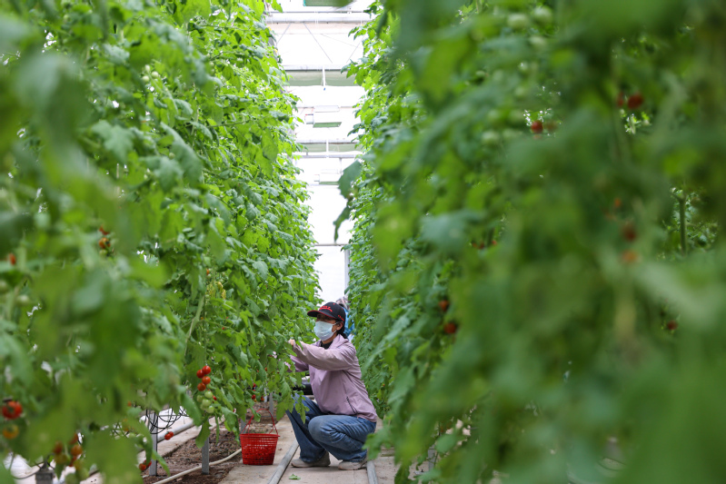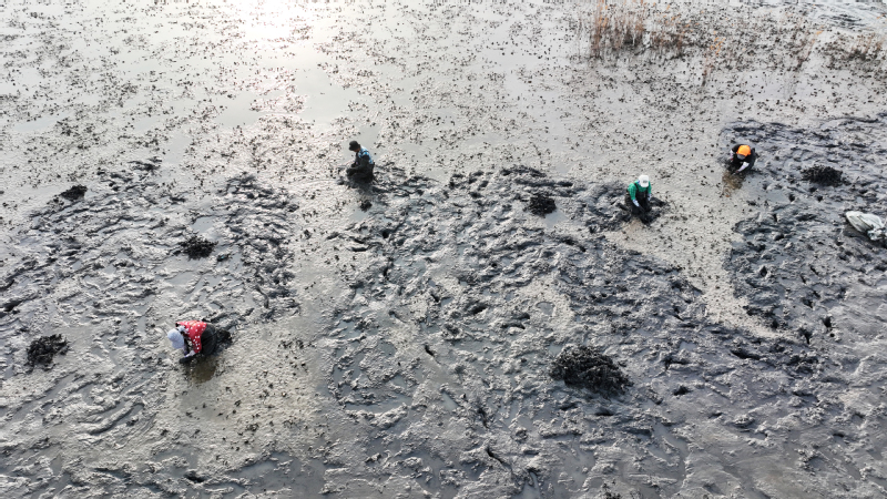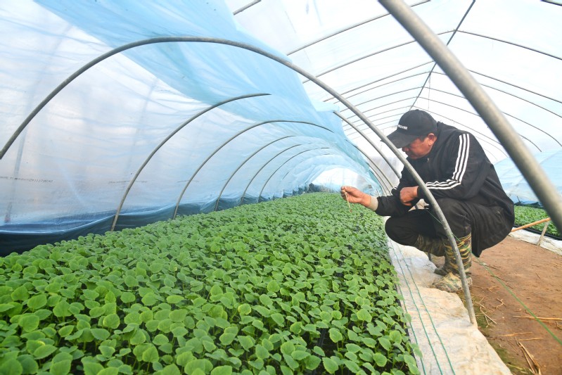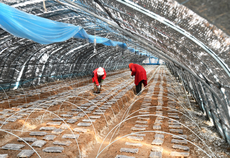 隨著氣溫逐漸升高,為保障羊肚菌正常生長發育,2月10日上午,淮海產業發展中心大棚基地工作人員,積極抓住羊肚菌原基萌發這一關鍵節點,有條不紊地進行揭膜、搭小棚等催菇前的準備工作?!敖裉焓俏覀兊谝慌蚨蔷シN后的第73天,目前有11個種植大棚內的羊肚菌菌霜已經完全消退,且出現了大量的原基,說明這批羊肚菌的菌絲已經達到成熟,進入下一個發育階段?!毖蚨蔷N植技術員袁亞洲介紹說,“羊肚菌原基的形成是羊肚菌生長過程中的一個重要環節,因此我們要及時揭開覆蓋在畦面上的地膜,保證原基獲取適宜的生長環境,確保原基能夠茁壯生長。?”羊肚菌大棚內,90多米長的畦面上,斷斷續續鋪滿了米粒大小的白色菌菇。技術員李博正拿著手機,在揭開地膜后的大棚內來回穿梭,不時蹲下身子仔細查看羊肚菌原基的長勢,以及對營養袋中營養物質的吸收情況?!把蚨蔷z扭結成球,形成晶瑩透明的米粒狀結構,就是羊肚菌的原基。因為十分微小,所以我都拿手機相機放大來看?!崩畈┙榻B說,“我們有好幾個種植大棚都出現了一兩個羊肚菌幼菇,也就是所謂的‘信號菇’,說明羊肚菌發育狀況良好,看來今年我們羊肚菌的產量前景不錯哩。?”為了達到增溫保濕的效果,基地的工作
