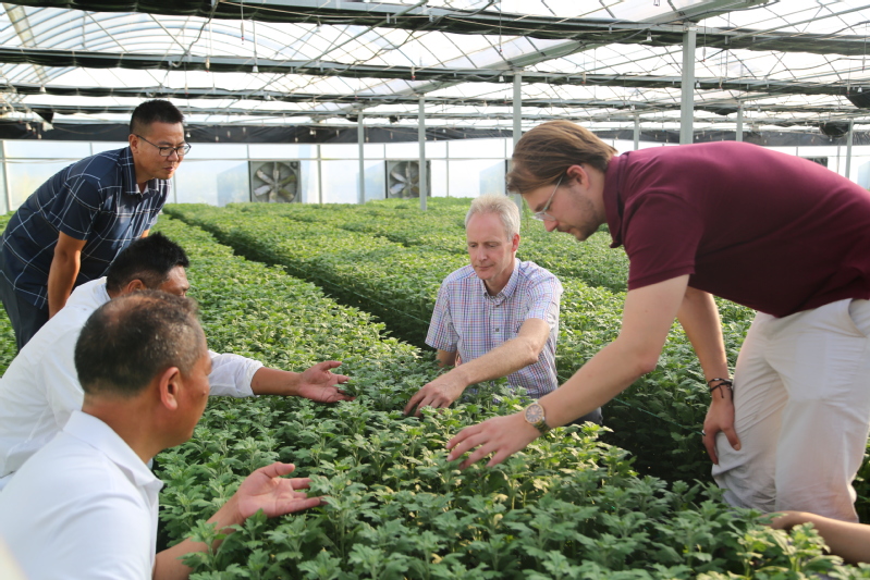 9月14日下午,荷蘭簡·懷特公司的花卉技術專家Kees Laan 帶領團隊來崗埠,與富民農業科技園技術人員交流座談,深入花卉種植溫室,現場為崗埠花卉種植“把脈問診”。